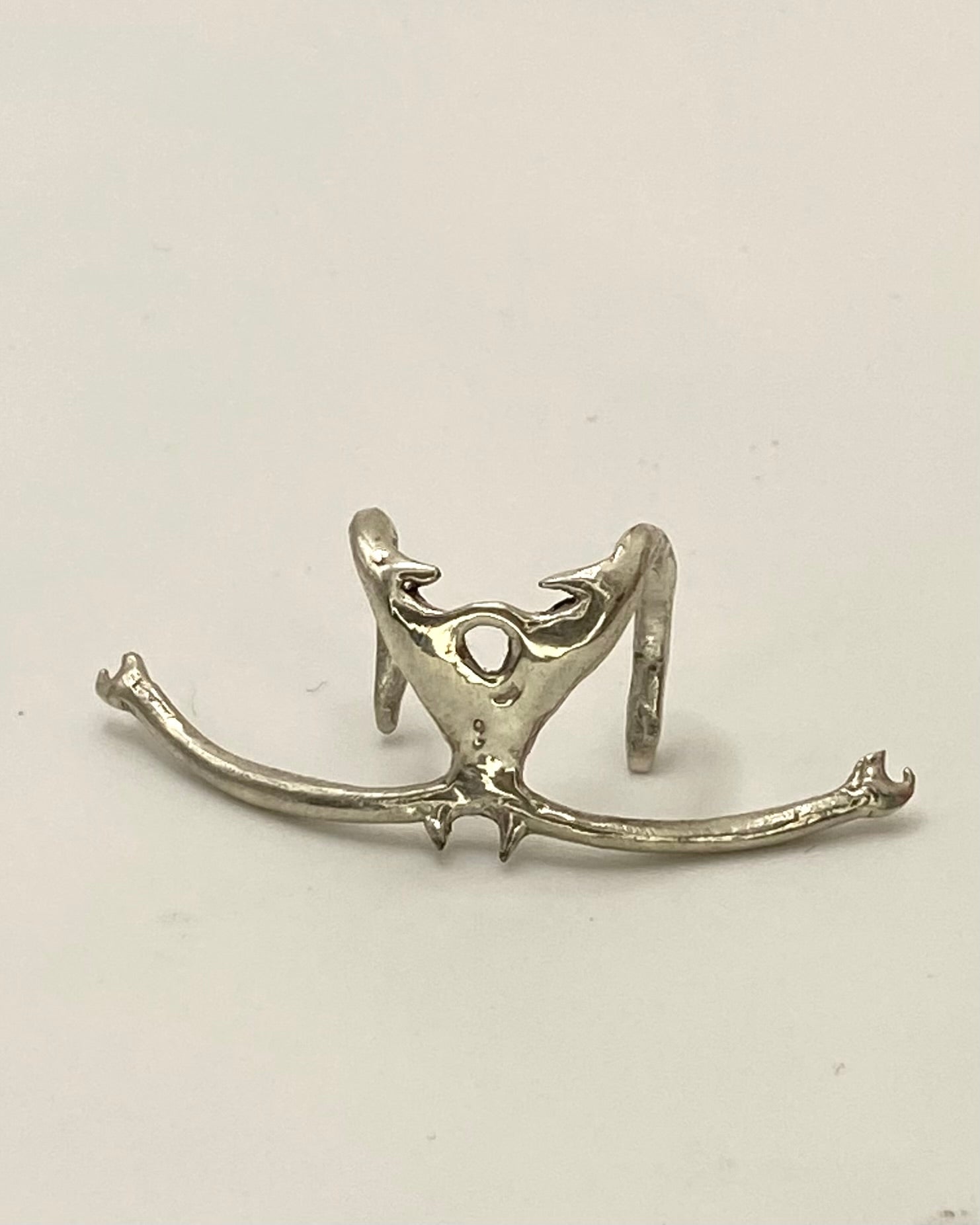 Lip accessory crafted in sterling silver. Finished with small crab-claw details on each side.