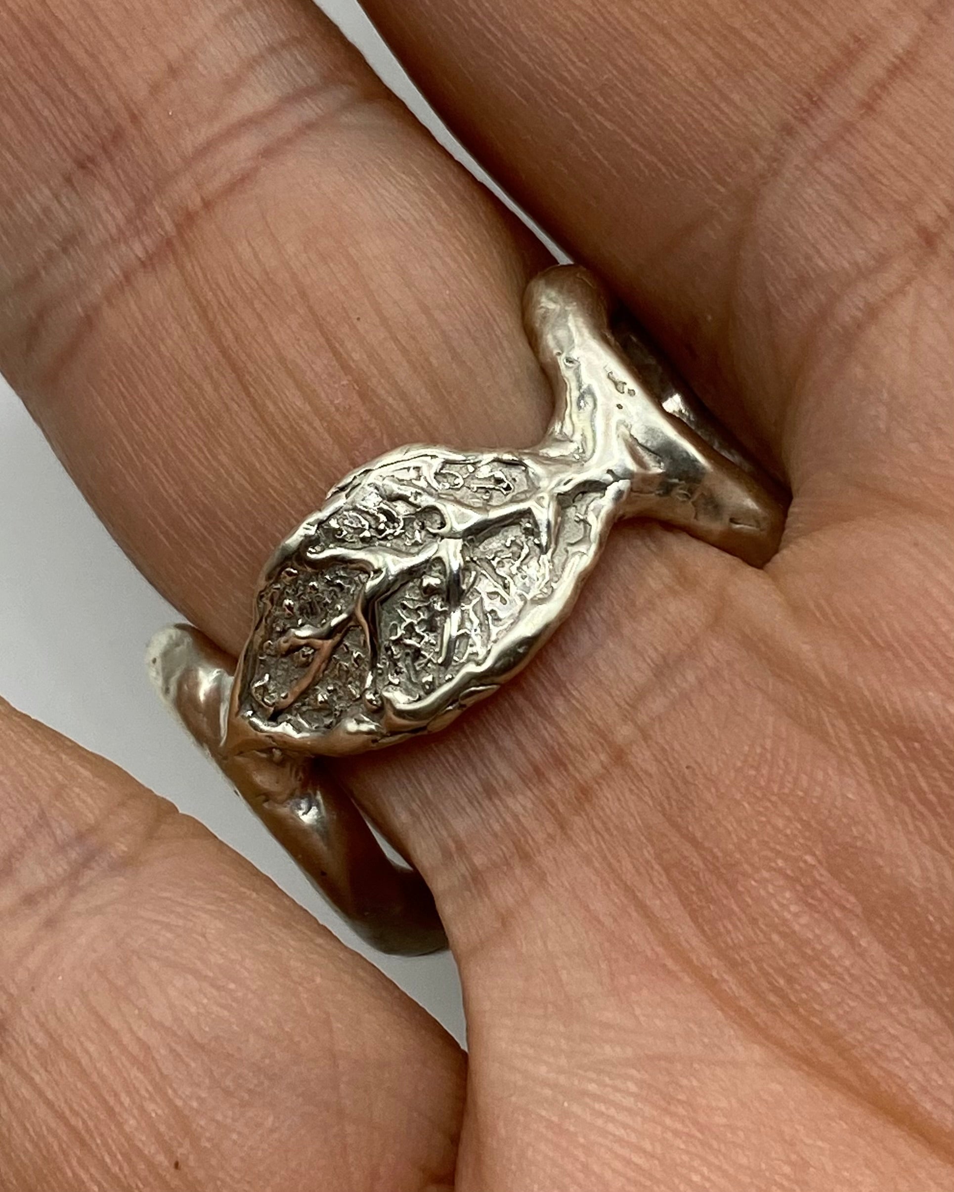 The band wraps around the finger with an organic look, almost like a living tendril.
